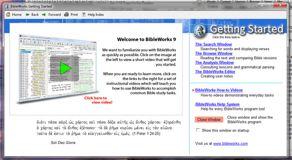 If you are new to BibleWorks, click the Home button and watch the main video shown there.